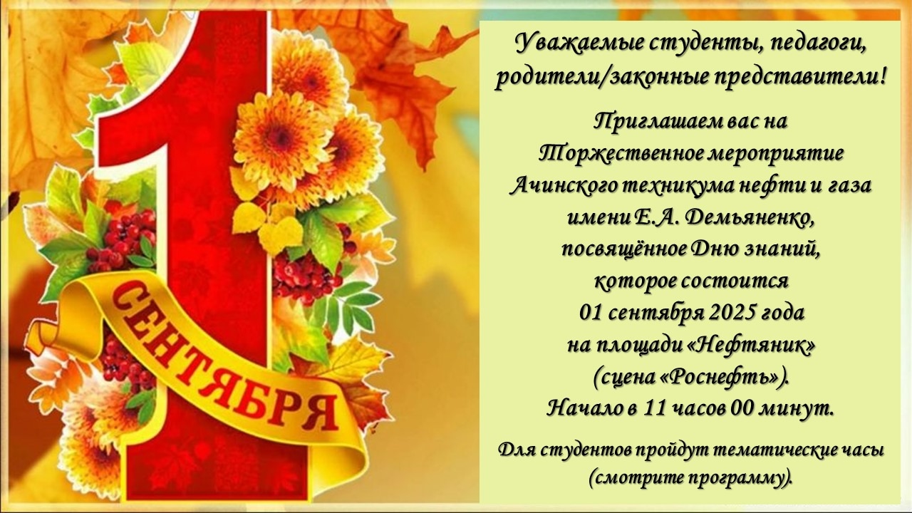 🎊 Торжественные мероприятия Ачинского техникума нефти и газа имени Е.А. Демьяненко, посвященные Дню знаний,
