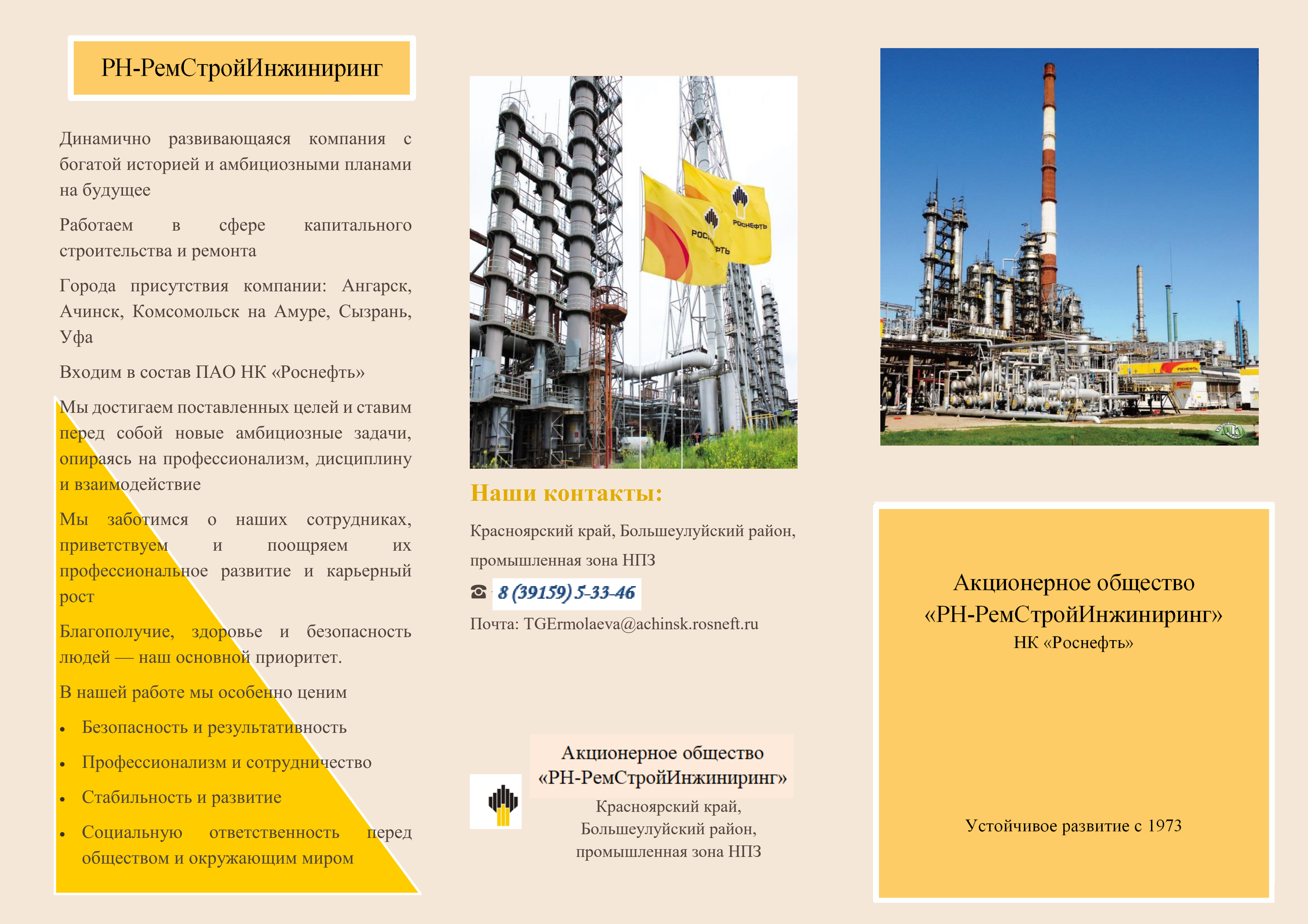Города присутствия компании: Ангарск, Ачинск, Комсомольск на Амуре, Сызрань, Уфа