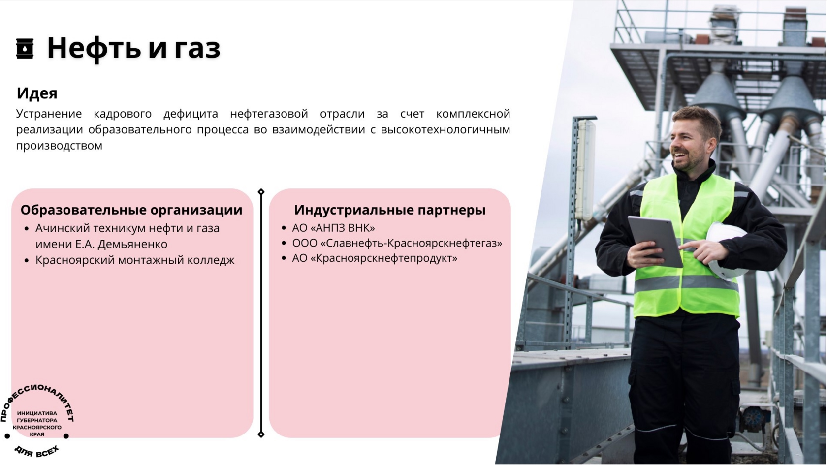 С 1 сентября 2025 года на базе Ачинского техникума нефти и газа им. Е. А. Демьяненко и Красноярского монтажного колледжа по новым программам будут осуществлять подготовку специалистов для нефтегазовой отрасли.